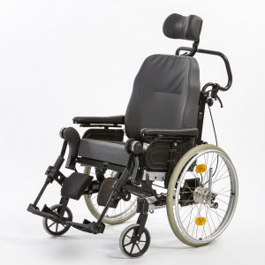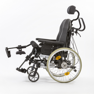 Multifunkční polohovací vozík, je vhodný pro pacienty, kteří jsou dlouhodobě odkázáni na pobyt v invalidním vozíku. Tento vozík je obzvláště pohodlný díky silnému polstrování sedací i opěrné plochy a díky flexibilitě všech jeho možných poloh. Je vhodný i pro ty, kteří mají problémy s udržením rovnováhy v sedě, nebo s ohledem na zdravotní stav je pro ně vhodnější poloha v pololeže. Vozík není skládací, má sklopná záda a polohovací podnožky.